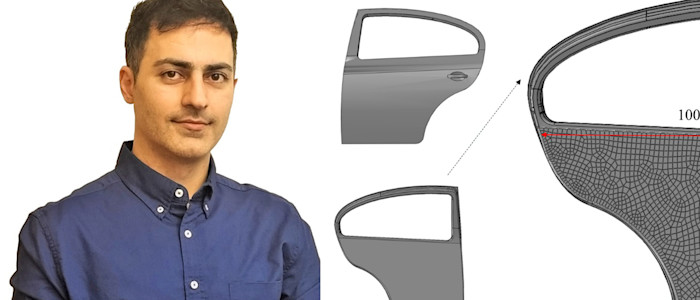Kompositernas motståndskraft mot olika slags påfrestningar utvärderades enligt kraven i europeiska standarder. I nästa steg ritade Pooria upp en bildörrspanel i 3D och gav den de egenskaper som viskosfiberkompositer har. Bildörrspanelen testades sen i en simulerad miljö, en tids- och kostnadseffektiv metod för att bland annat utvärdera hur mycket yttre påverkan bildörren tål utan att gå sönder eller deformeras.